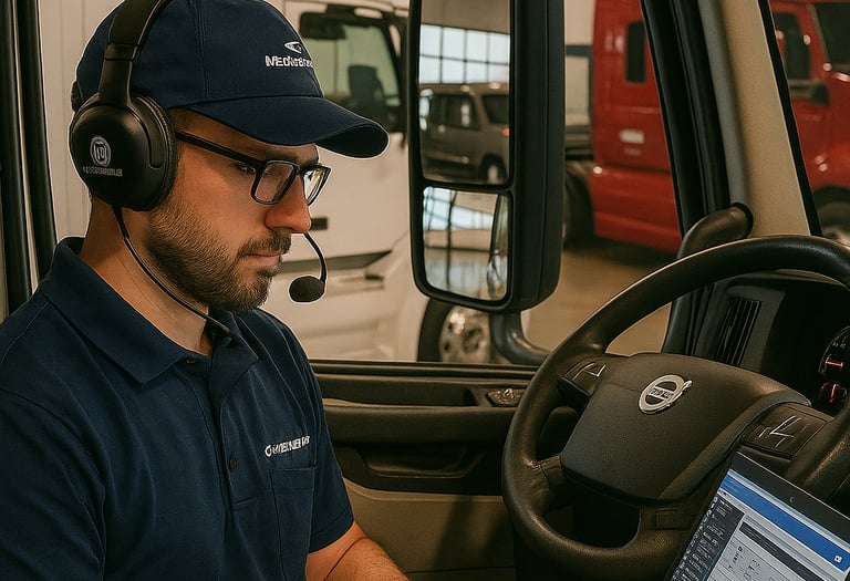 A solution that allows you to analyze and resolve faults in your truck without having to move it from the workshop. Through a secure connection between your laptop and our remote access system, a specialized technician accesses the vehicle in real time, checks the fault codes, performs tests, and guides you step by step to identify the problem and correct it.